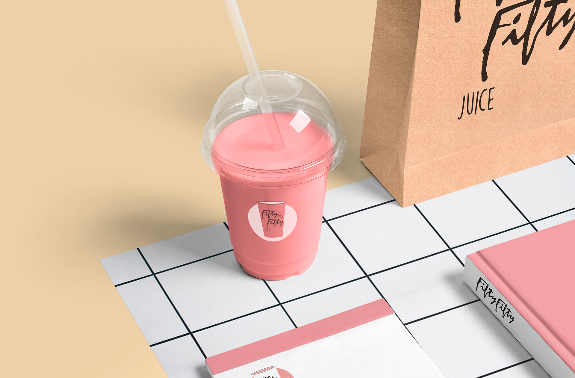 Fifty-Fifty, a tea room with a menu made up of 50% cakes and 50% fruit juices. Each cake is made to match the fruit juice that goes with it.
